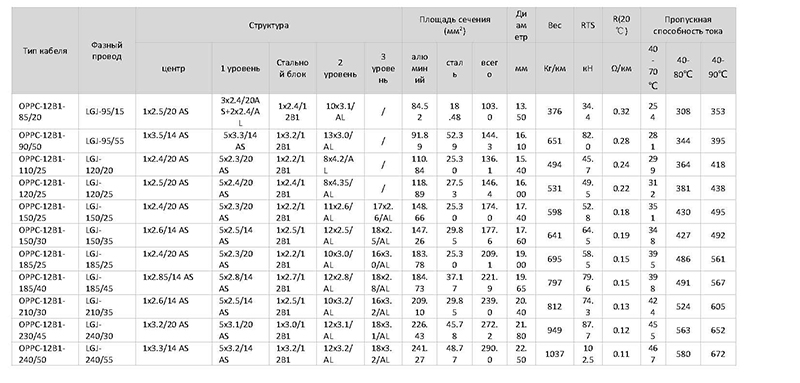 · Предназначен для передачи электрической энергии и организации оптической связи для подвеса в качестве фазного провода на линиях электропередач 35 Кв и выше
